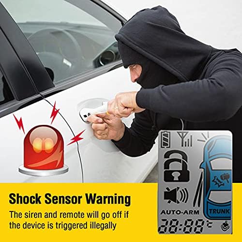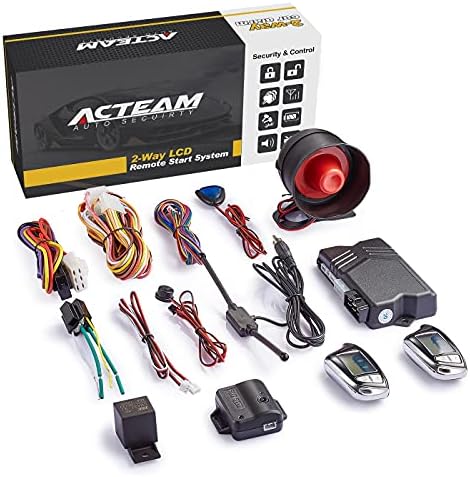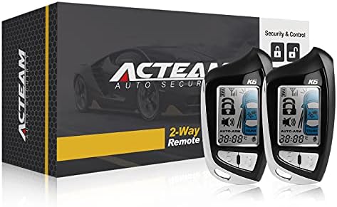 Acteam TWO-way car alarm system with 5-Button LCD display remote, monitor your vehicles 24 hours every day and get real-time feedback. 1.73″ Big size LCD remote controller, LCD color changed against different alert.