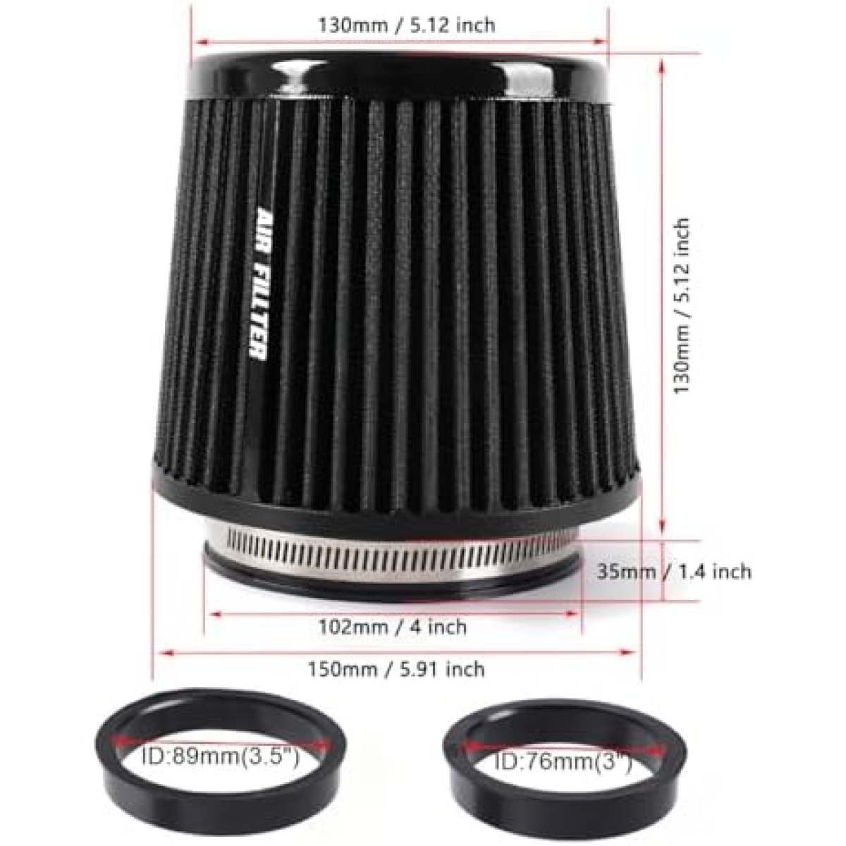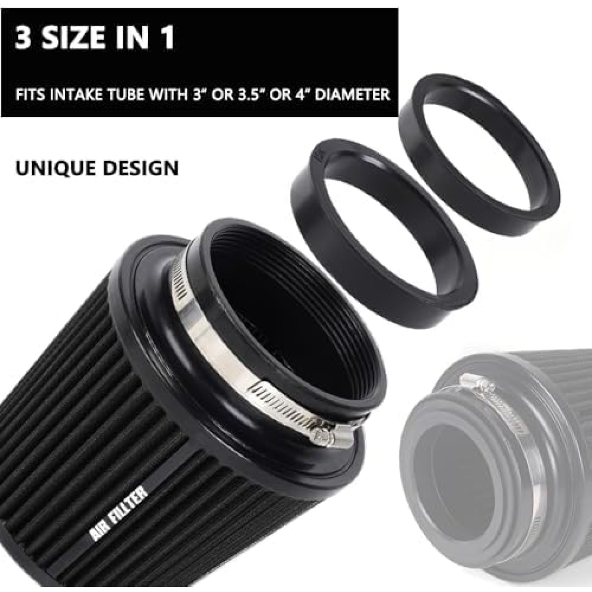 REPLACEMENT- Cold Air Intake Filter dirt and protects your engine from harmful contaminants. Include adapter rings to fit intake tube with 3 inch, 3-1/2 inch and 4 inch diameter