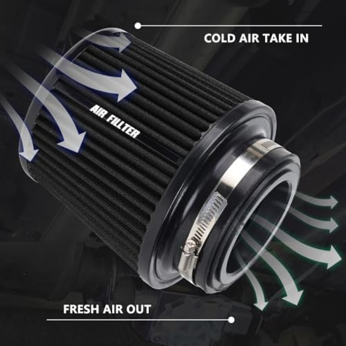 INSTALL EASY- Cone Air Filter built with simple clamp-on design and 3 sizes. Easy to assemble with all parts included