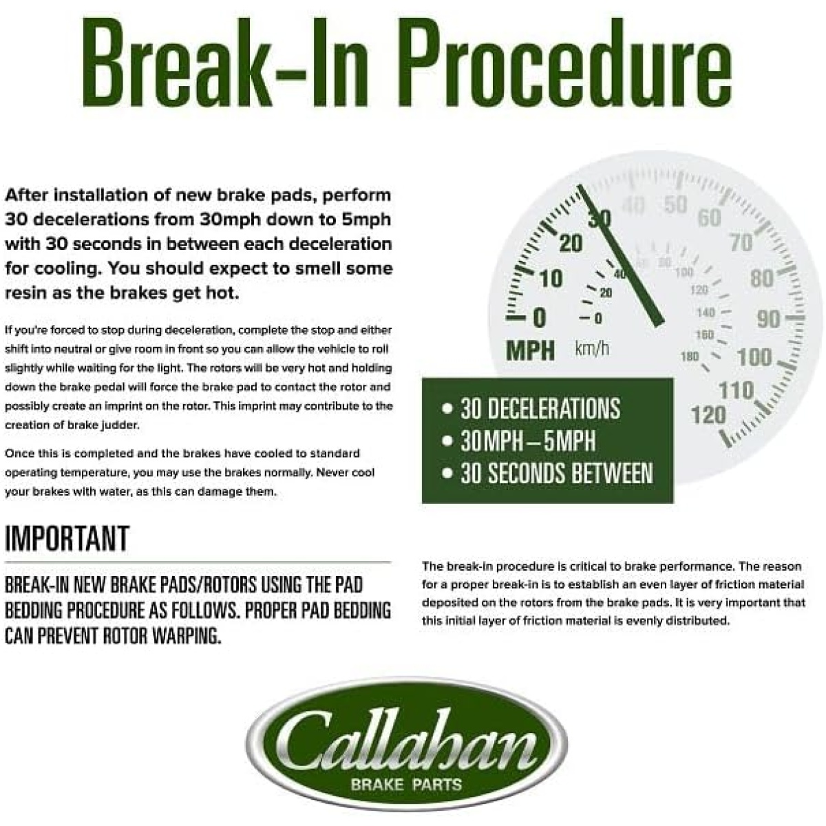 CALLAHAN BRAKE PART BENEFITS