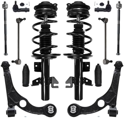 Suspension Kit Includes: 2x Front Struts & Coil Spring Assembly + 2x Front Lower Control Arms w/Ball Joints + 2x Front Sway Bar Links + 4x Front Inner Outer Tie Rods + 2x Tie Rod Boots + Bellows w/Locking C-Clamps