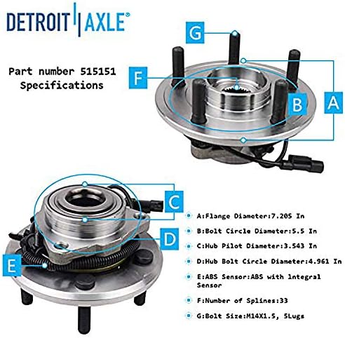 Wheel Bearing Hub Replacement for 2012 2013 2014 2015 2016 2017 2018 Ram 1500 (Excluding Tradesman HD) – [2019 2020 2021 2022 Ram 1500 Classic]
