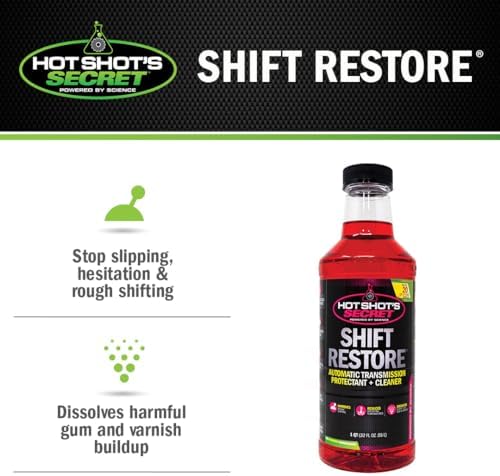 Formerly known as Transmission Stiction Eliminator, or TSE transmission fluid, Hot Shot’s Secret Shift Restore Automatic Transmission Protectant was designed to meet the ever-evolving demands of sophisticated transmission systems. This transmission conditioner high performance ester formula is a unique lubricity and cleaning agent, that tenaciously attaches itself to all metal parts that it comes in contact with inside the transmission. The strong polarity pulls deposits off the metal surfaces and puts them back into solution. The metal in a transmission is nearly always positively charged while Shift Restore is negatively charged. Attachment of a thin layer of Shift Restore to all metals is natural and not dependent upon temperature, pressure or anything else. An added benefit is a reduction in temperature due to less friction on the critical moving parts.