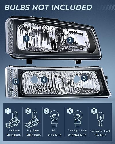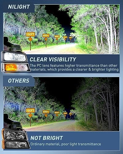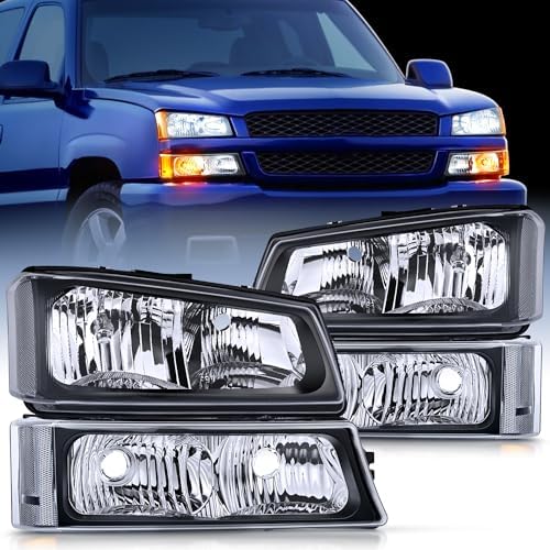 Nilight Headlight Assembly 2004-2006 Avalanche 2003-2006 Silverado 1500 1500HD 2500 2500HD 3500 Black Housing Clear Corner Driver and Passenger Side OEM Replacement Kit