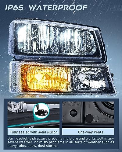 Waterproof: Our 2003-2006 1500/1500 HD/2500 HD/3500 Classic silverado headlights are IP65-rated completely sealed to prevent moisture from intruding into the housing. Ventilation Hole regulates temperature to avoid fogging and keep the headlights bright and clear