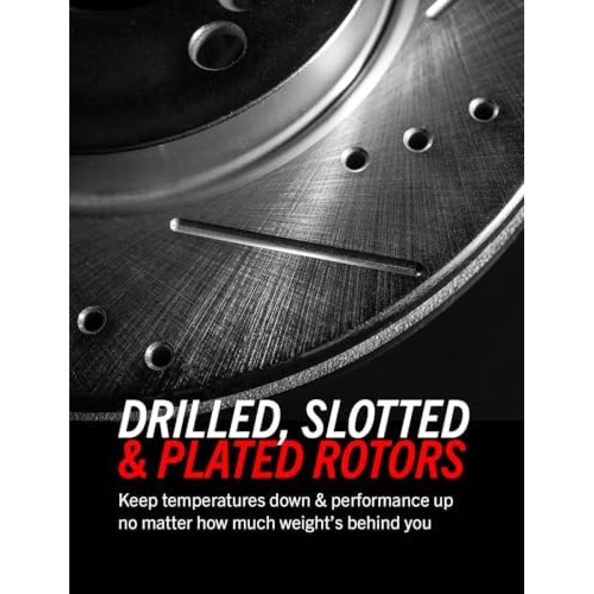 Drilled & Slotted performance rotors for maximum cooling. Rotor Type: Front: Vented, Rear: Vented