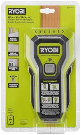 The RYOBI Whole Stud Detector is designed with multiple LED’s to indicate the full width of the stud, not just an edge or center. The one-handed operation provides an easy to use experience every time. The Auto Depth Scan Technology determines the thickness of the wall up to 1-1/2 in. thick to accurately identify wood and metal studs. The built-in stud marker conveniently marks the center of the stud without the need for a pencil. Included is (1) Whole Stud Detector, (2) AAA Batteries and Operator’s Manual