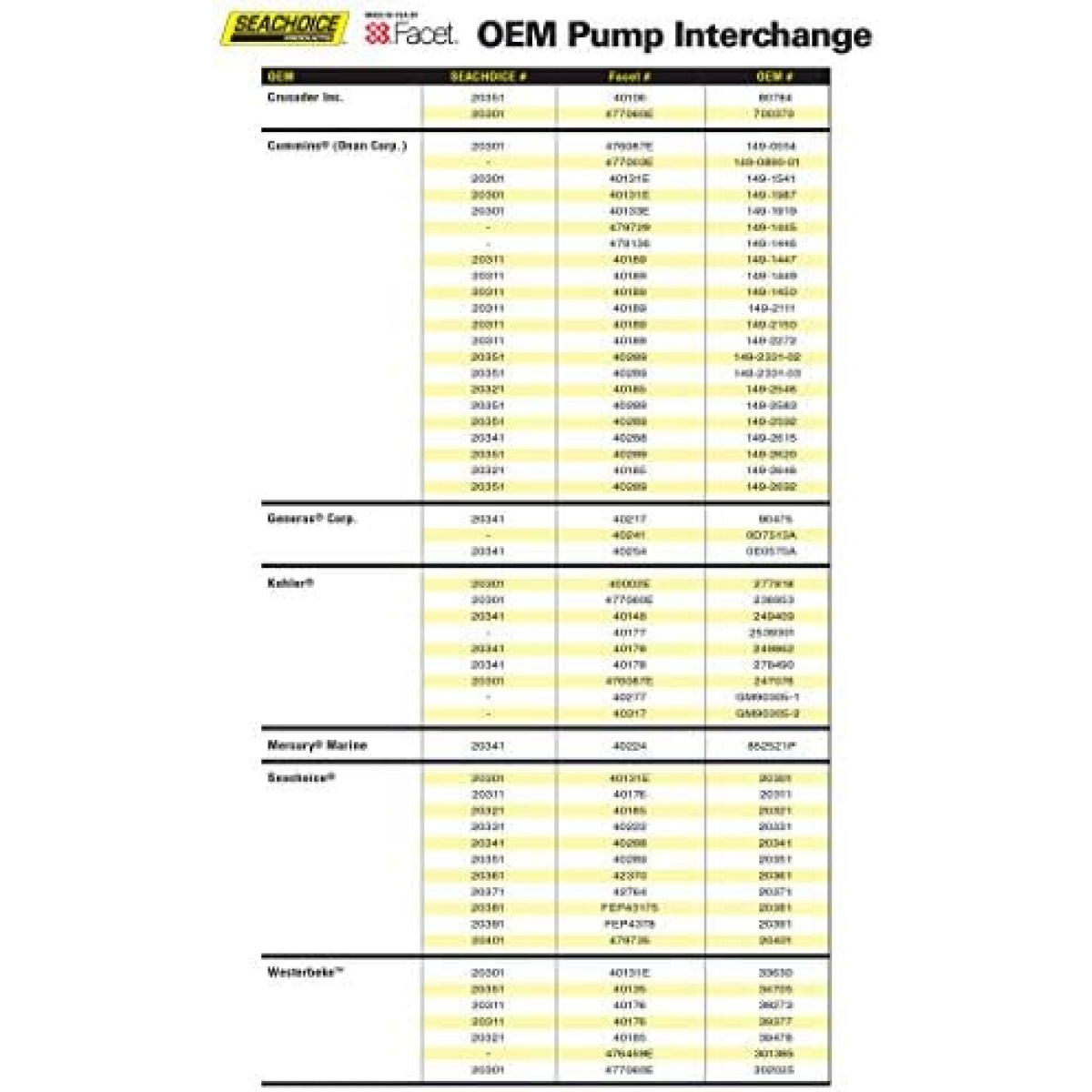 This Seachoice Dura-Lift® Electronic Fuel Pump features premium components and solid-state construction to ensure it provides the most reliable fuel delivery possible. It offers tremendous versatility as it is compatible with gasoline, diesel, biodiesel, blended alcohol fuels, and fuel additives, so it will work for the widest variety of applications. Plus, this 12-volt Fuel Pump can be used on: marine generator sets, refrigeration trucks, diesel filtration systems, industrial applications, and other diesel lift applications. It is rated for 120 inches lift, 11.5-9 psi, and 33 gph. This OEM # FACET 40222 Fuel Pump has a 1/8 inch x 27 thread. This Fuel Pump is self-regulating and has an internal check valve. It also has a 4-hour dry run, voltage spike protection, and an 80-micron Stainless Steel filter to prevent impurities from passing through the fuel system. Seachoice is committed to delivering quality marine accessories and OEM replacement parts to satisfy fishing, boating and watersports enthusiasts worldwide. Seachoice is run for and by boaters, offering a wide-ranging product line while remaining affordable.