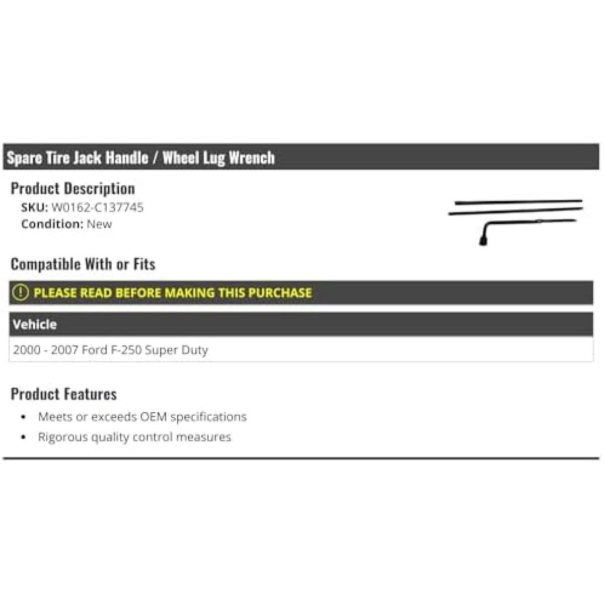 Spare Tire Jack Handle / Wheel Lug Wrench – Compatible with 2000 – 2007 Ford F-250 Super DutyFeatures:Meets or exceeds OEM specificationsRigorous quality control measuresCompatible With or Fits:2000 – 2007 Ford F-250 Super Duty