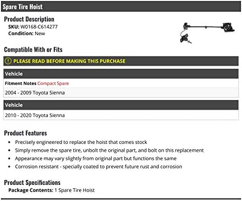 Spare Tire Wheel Hoist Winch – Compatible with 2004 – 2020 Toyota Sienna