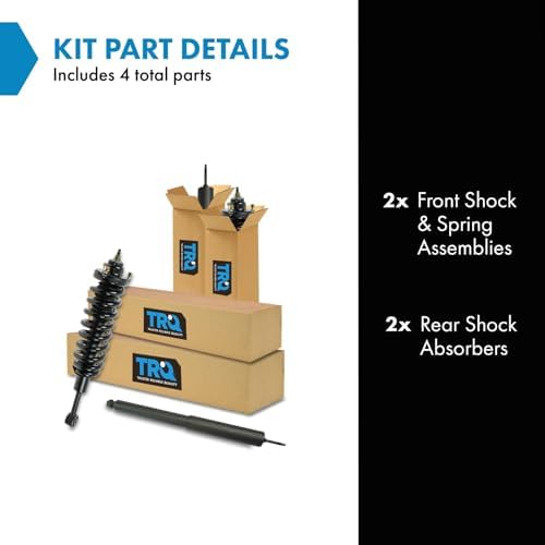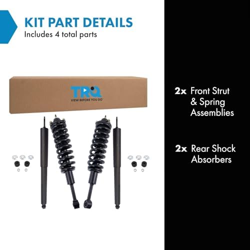 TRQ fully loaded shocks and struts are manufactured using premium raw materials and calibrated to restore original ride comfort. TRQ shocks are fully loaded featuring a pre-loaded bearing plate, upper and lower spring isolator, upper spring seat, coil spring, boot kit, and premium strut. TRQ recommends replacing your shocks or struts in pairs to ensure even wear of components and improved ride comfort. All products are fit and road-tested in our Massachusetts R&D facility to ensure we deliver on our promise of Trusted Reliable Quality.